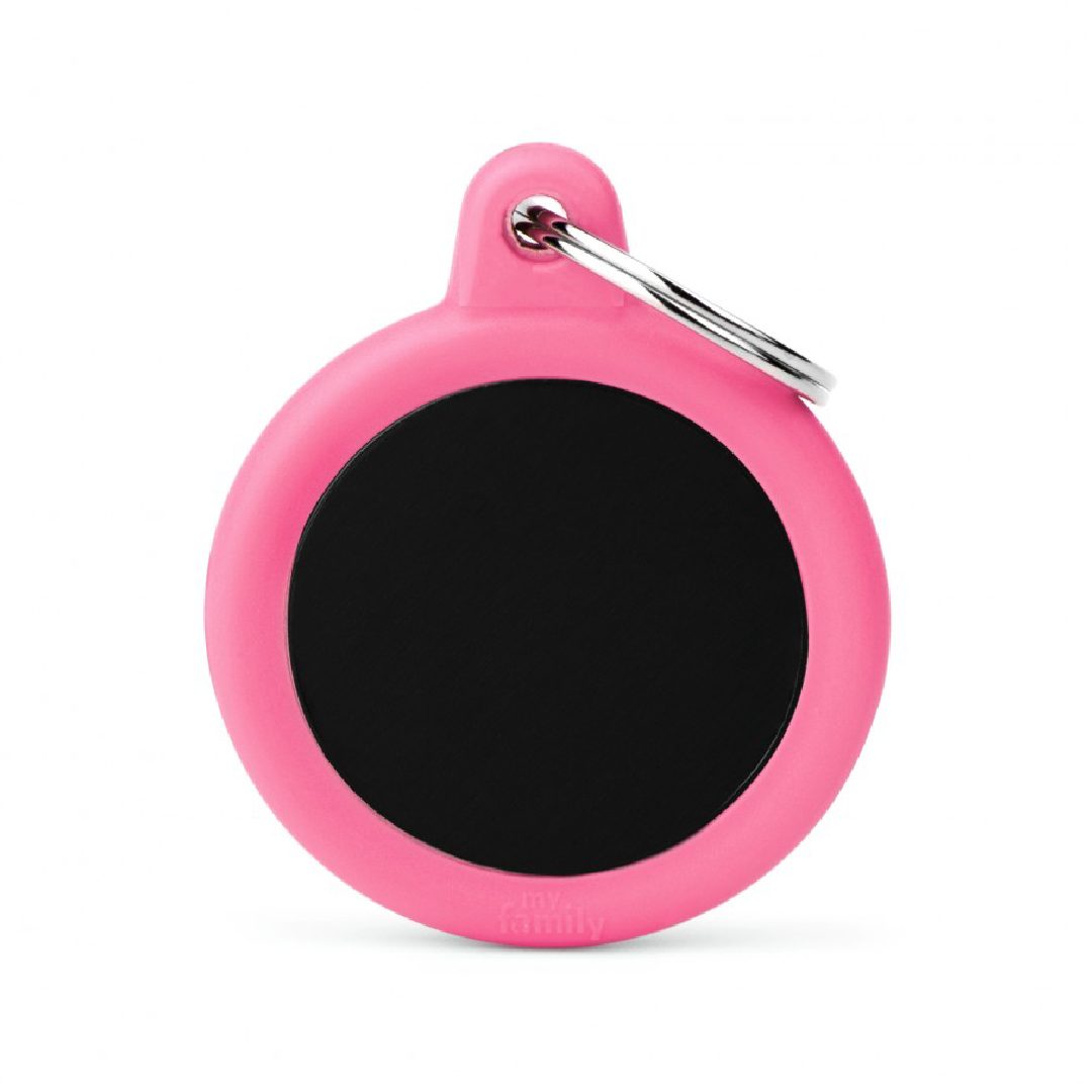 Inicio Identificacion Identificacion Mascota Placas Hushtag id MY FAMILY BLACK CIRCLE ALU PINK RUBBER