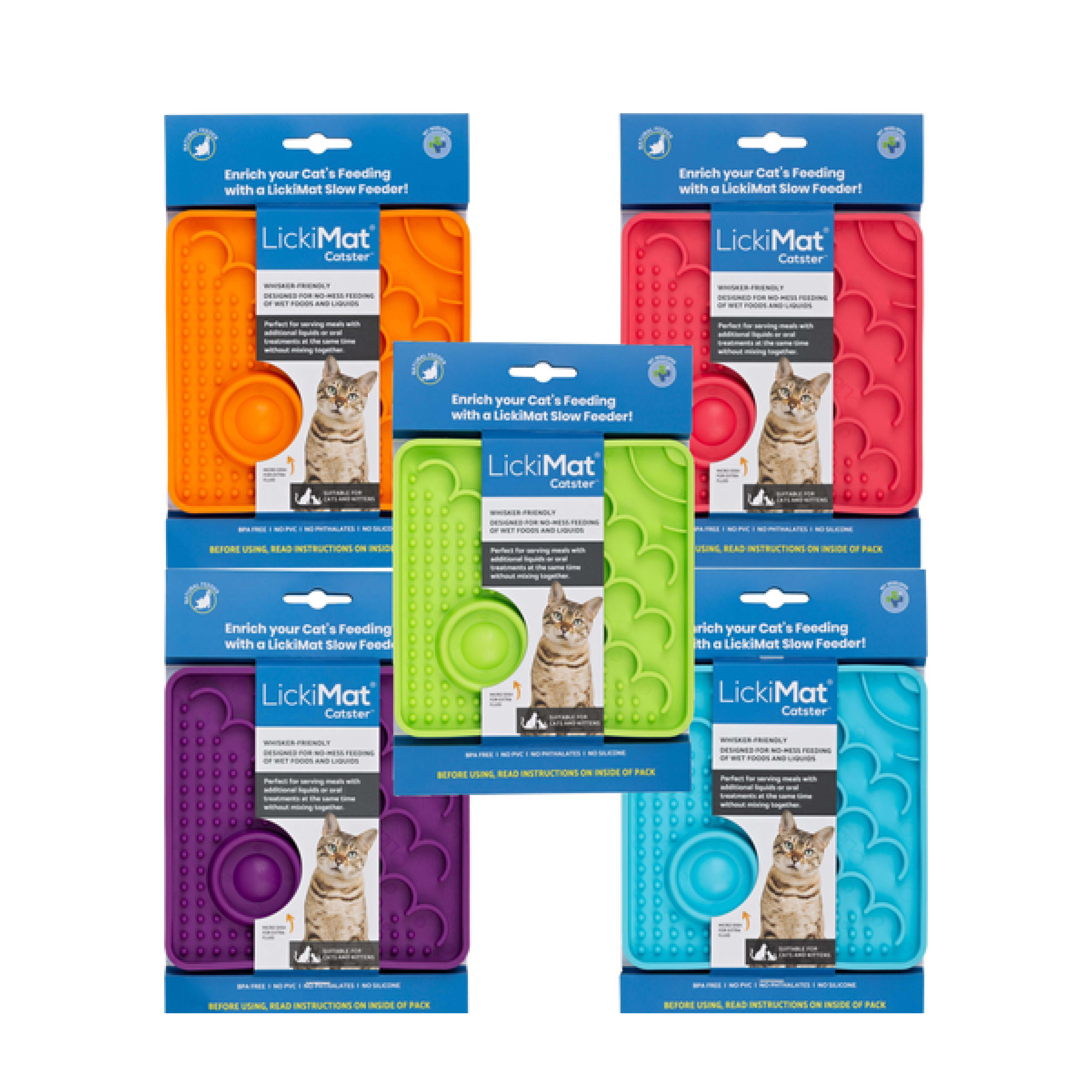 • LickiMat Catster detiene el «estrés de los bigotes» y permita que su gato se alimente en posición agachada con una vista completa de su entorno, lo que reduce el estrés y la ansiedad.