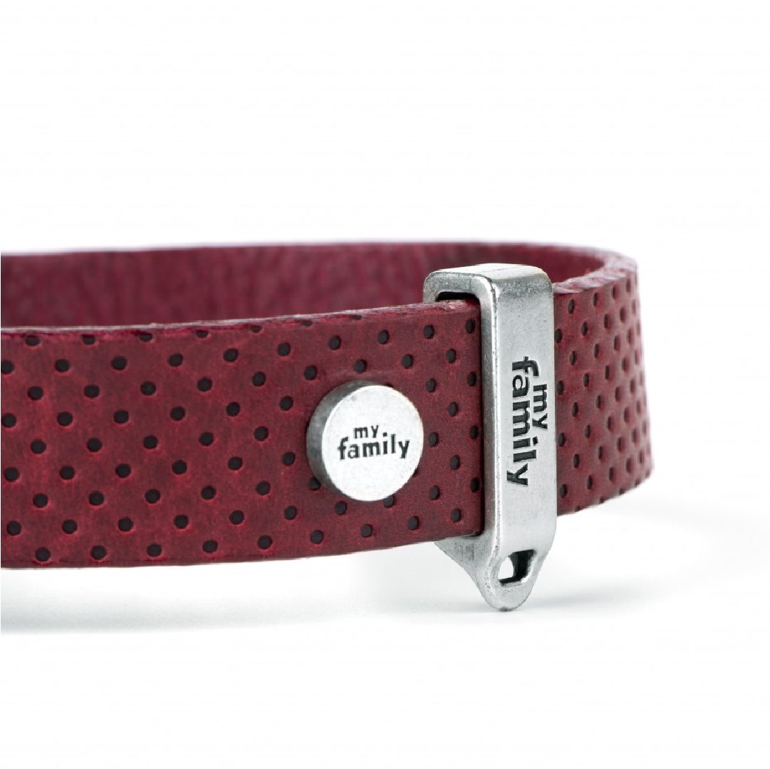 • Hecho de cuero original italiano con acabados en plata antigua