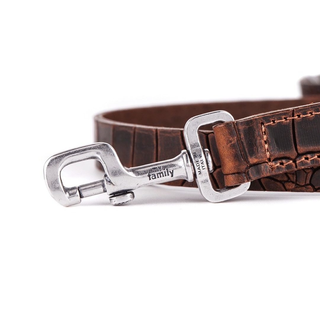 • Hecho en cuero original italiano tórtola con acabados en plata antigua.