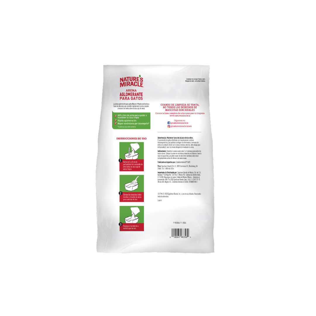 La arena para gatos Nature’s Miracle aglomerante está hecha a base de minerales que encapsulan rápidamente la orina y ayuda a destruir los fuertes olores de la caja de arena