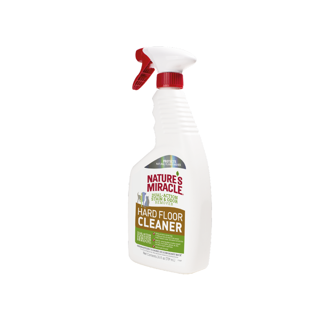 Nature’s Miracle® Hard Floor Cleaner es un eliminador de manchas y olores de mascotas de doble acción ideal para eliminar manchas y olores causados por orina, materia fecal, grasa, aceite, grasas y otros sustratos orgánicos.