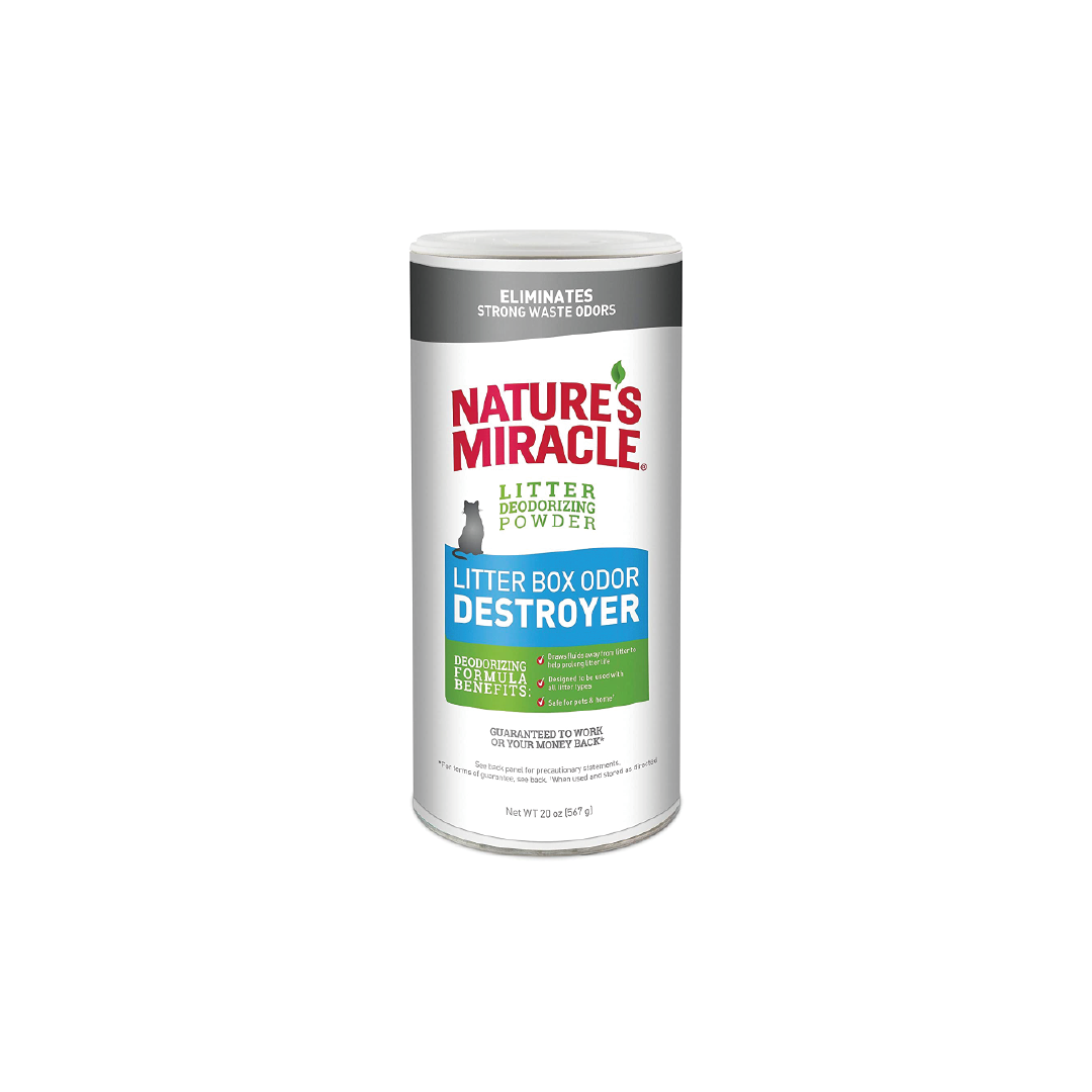 El polvo destructor de olores de la caja de arena Nature’s Miracle elimina los olores fuertes de los desechos y la orina
