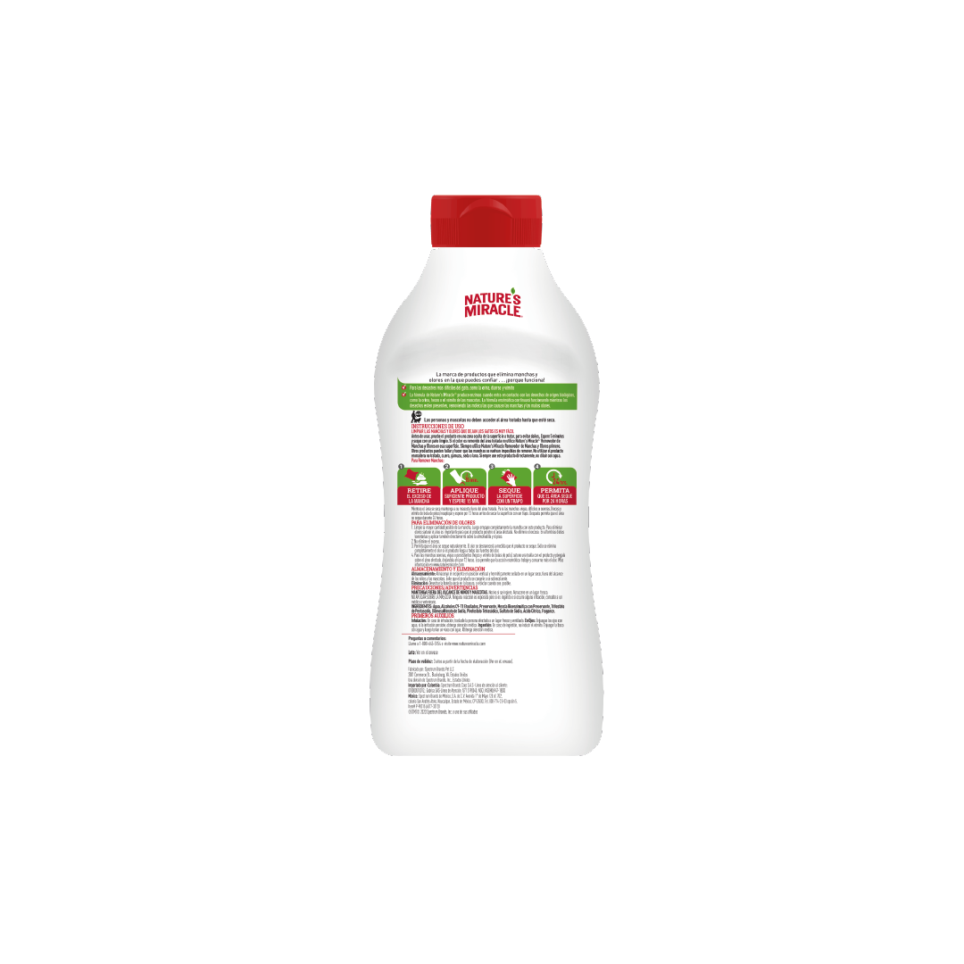 El removedor de manchas y olores contiene una fórmula que actúa contra la orina, heces, vómito y otros olores de origen orgánico.