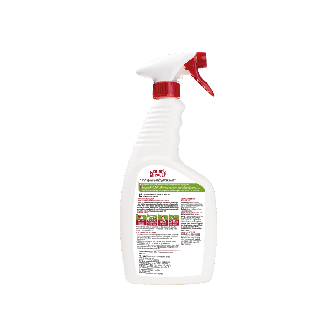 El removedor de manchas y olores contiene una fórmula que actúa contra la orina, heces, vómito y otros olores de origen orgánico.
